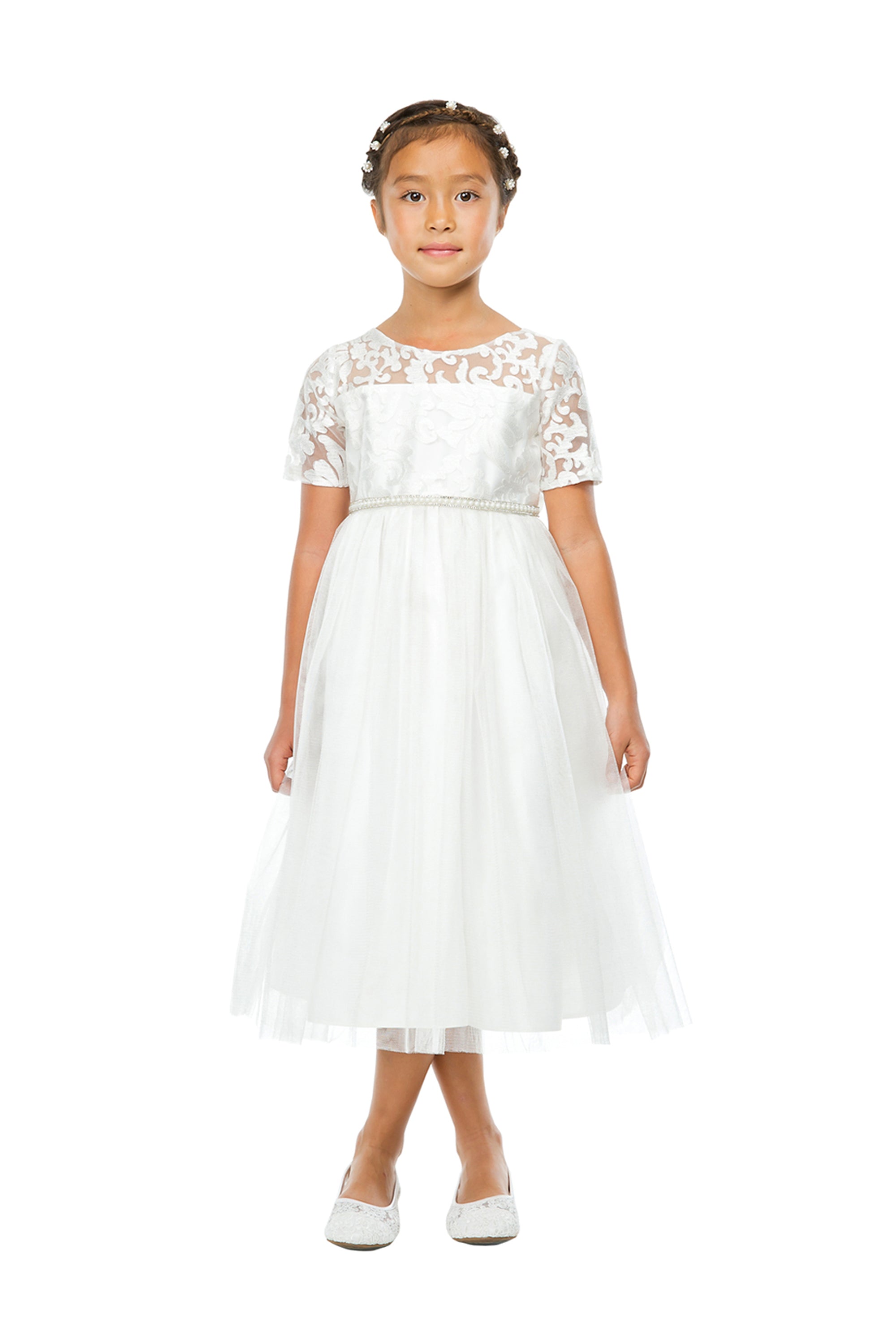 Embossed Mesh w/Crystal Tulle Dress