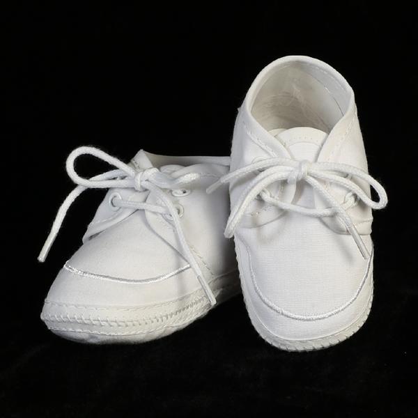 Swea Pea & Lilli Baptism Shoes for Boys - White Baby Booties made with Cotton for Christening/Baby Blessings.