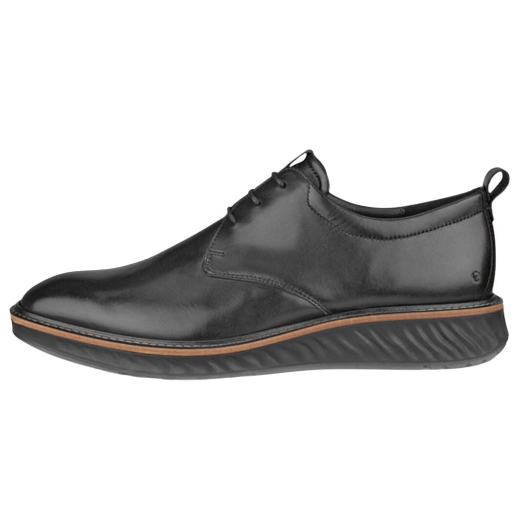 This edition of the ECCO ST. 1 Hybrid is a three-eyelet Derby that's sleek and sophisticated but has the feel and comfort of a sneaker. It features an ultra-light PHORENE™ midsole and our SHOCK THRU technology for shock absorbency and a pleasant walking experience. This makes it an ideal choice for the office or your weekend social events.
