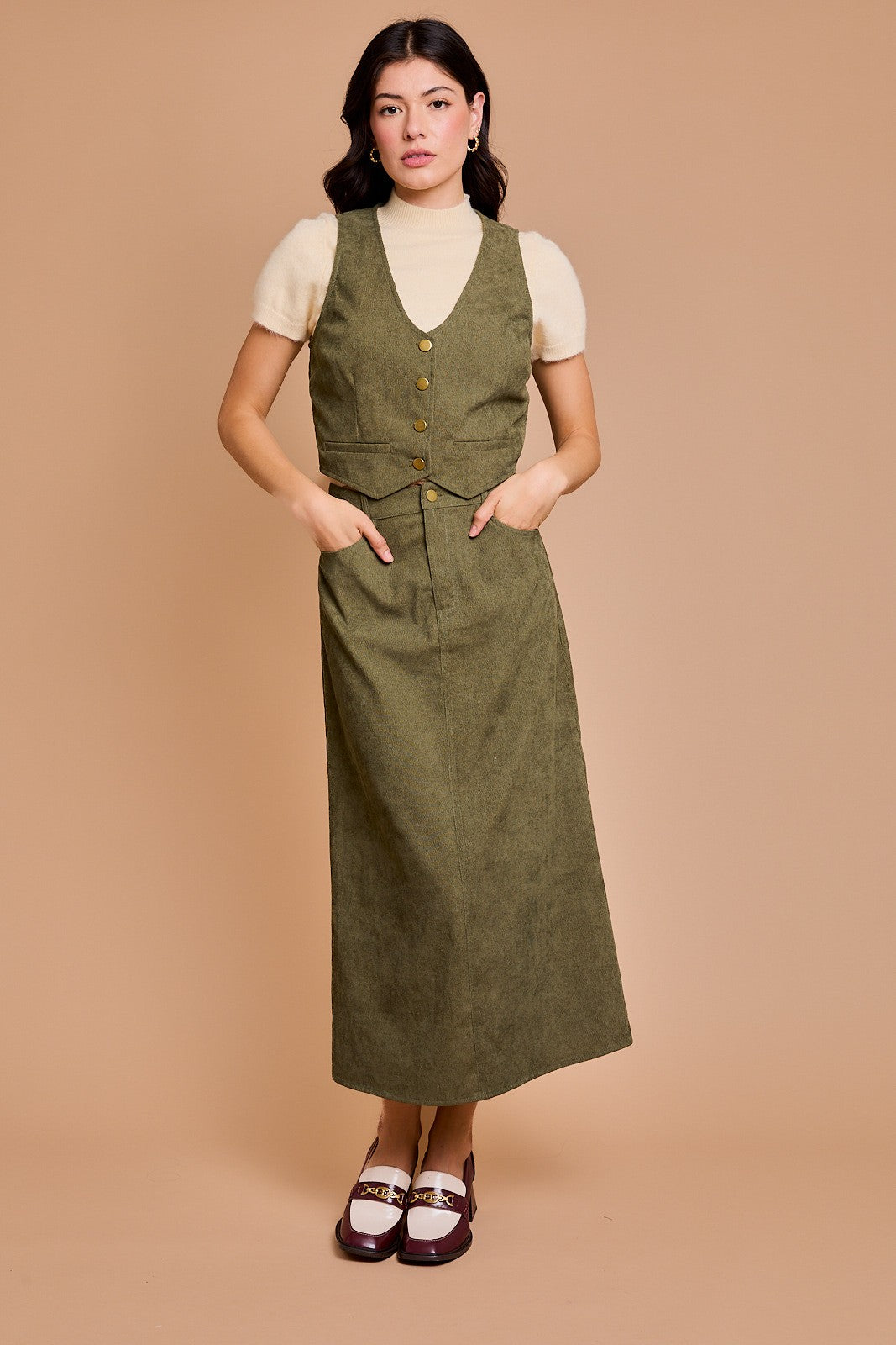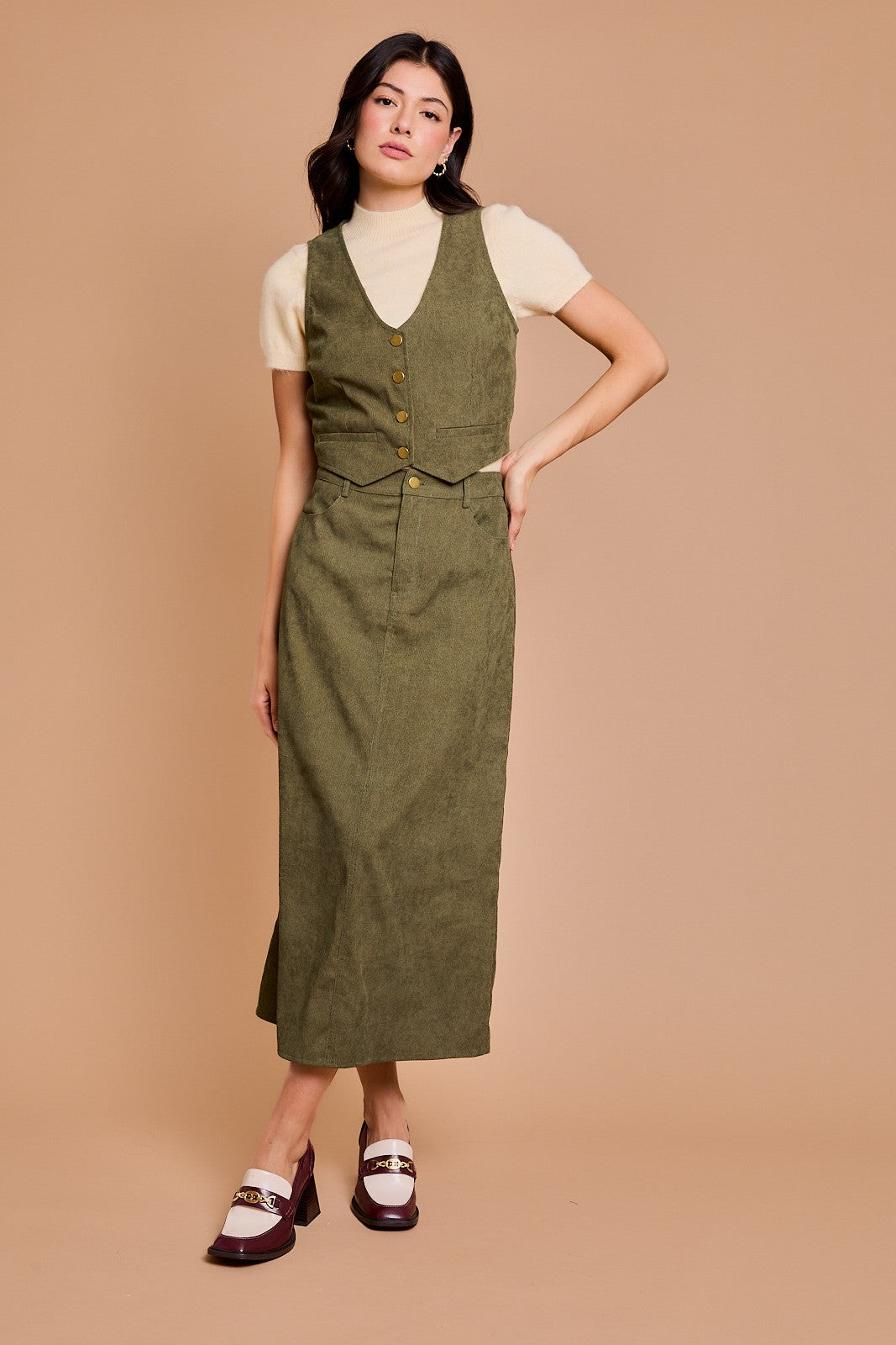 This stunning maxi skirt is the perfect companion to the cropped vest, offering a seamless, coordinated look that exudes effortless elegance. Made from a soft, flowing fabric, the skirt drapes beautifully, creating a flattering silhouette that moves with you. The high-waisted design ensures a flattering fit, while the full-length cut adds a touch of sophistication. With a simple yet chic design, this maxi skirt pairs perfectly with the cropped vest for a balanced, on-trend ensemble or paired with any top. Whether you're dressing up for a special occasion or enjoying a casual day out, this skirt is a versatile addition to your wardrobe that complements a range of styles.